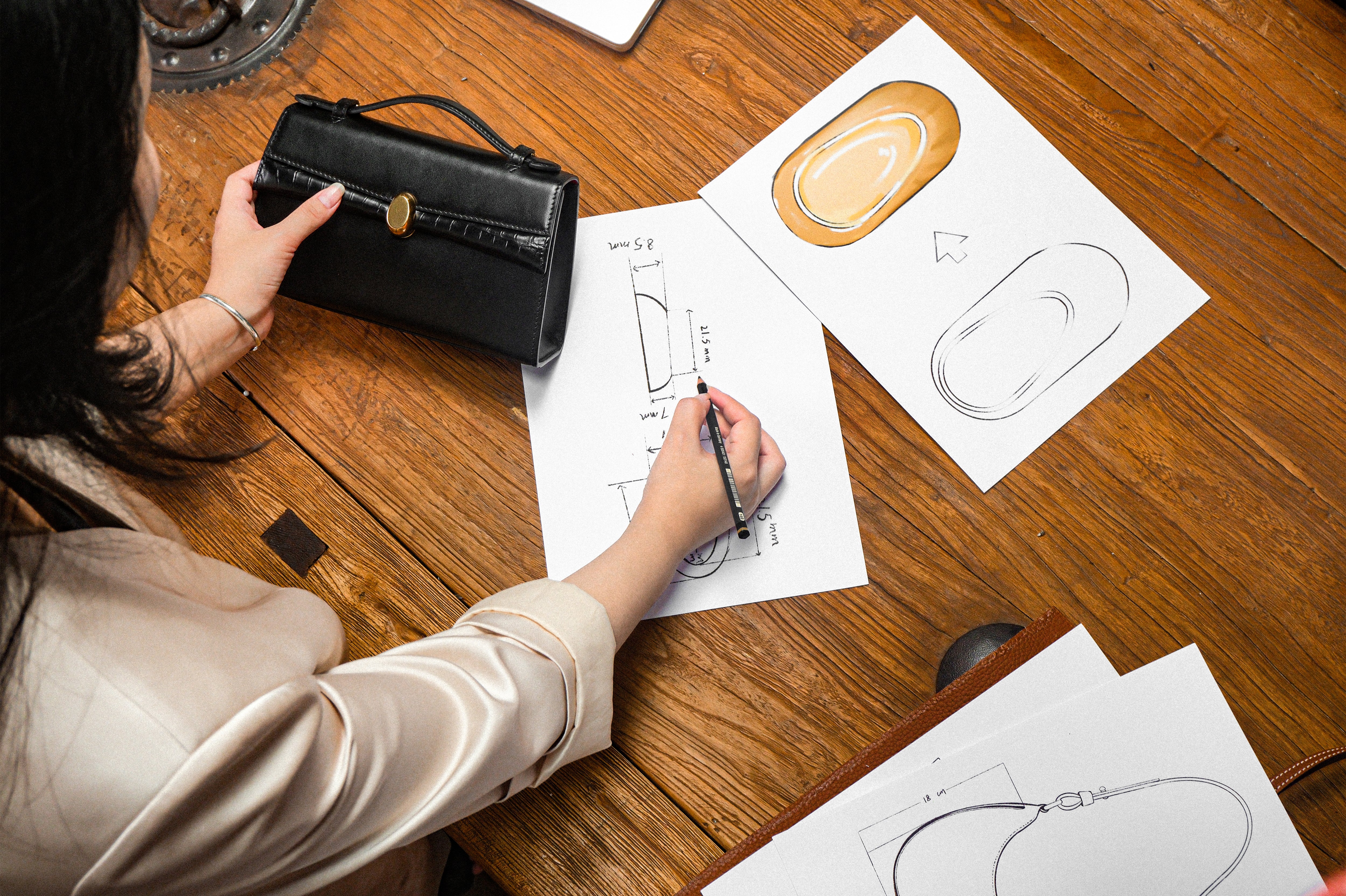 Design:H.PAI focuses on whether a bag's size, capacity, and portability are suited to its intended use. In a design meeting, we were discussing the internal structure of a new handbag. Someone suggested adding multiple small pockets for organization, but I firmly said, "No, thoughtful design isn’t about cluttered compartments and pockets. We want to give space back to the user, allowing them more freedom." Hence, we designed a work bag large enough to fit a laptop and an evening bag that holds essentials like makeup and a phone. We focus on real needs, not creating storage anxiety, and avoid excessive design.